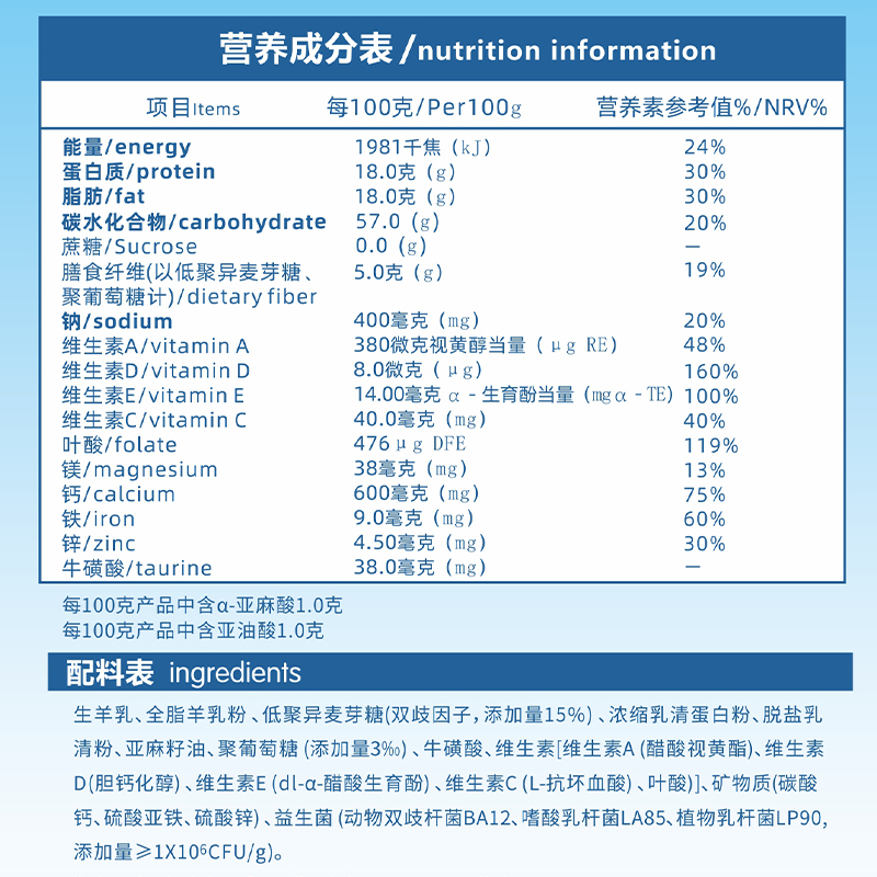英致中晚年益生菌羊奶粉是专为中晚年人设计的一款产品。。。。。。产品奶源纯净,,,,,,,,混淆自然营养素,,,,,,,,搅拌当季新鲜草料,,,,,,,,以42℃温水协调喂养奶羊,,,,,,,,再以此优质羊乳为质料,,,,,,,,经由喷雾干燥精制而成。。。。。。